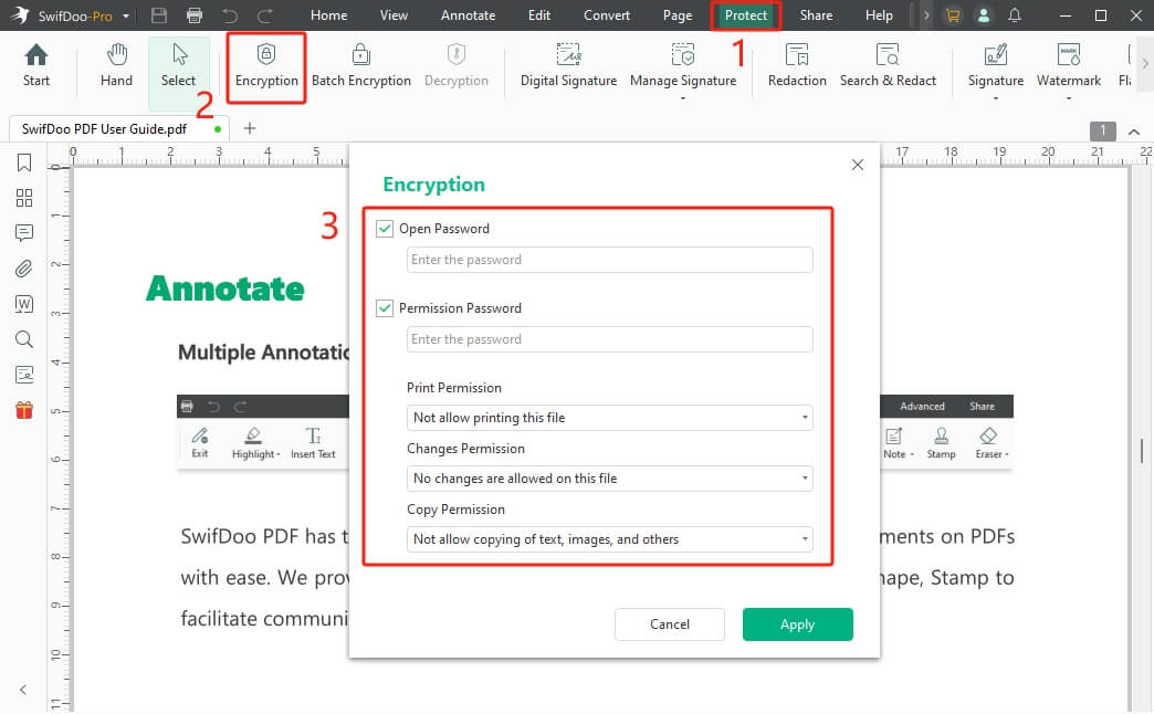 SwifDoo PDF lets you password-protect a PDF, control permissions for editing, printing, or copying, and apply encryption to secure your documents effectively. These features make it ideal for business users or anyone handling sensitive information.
